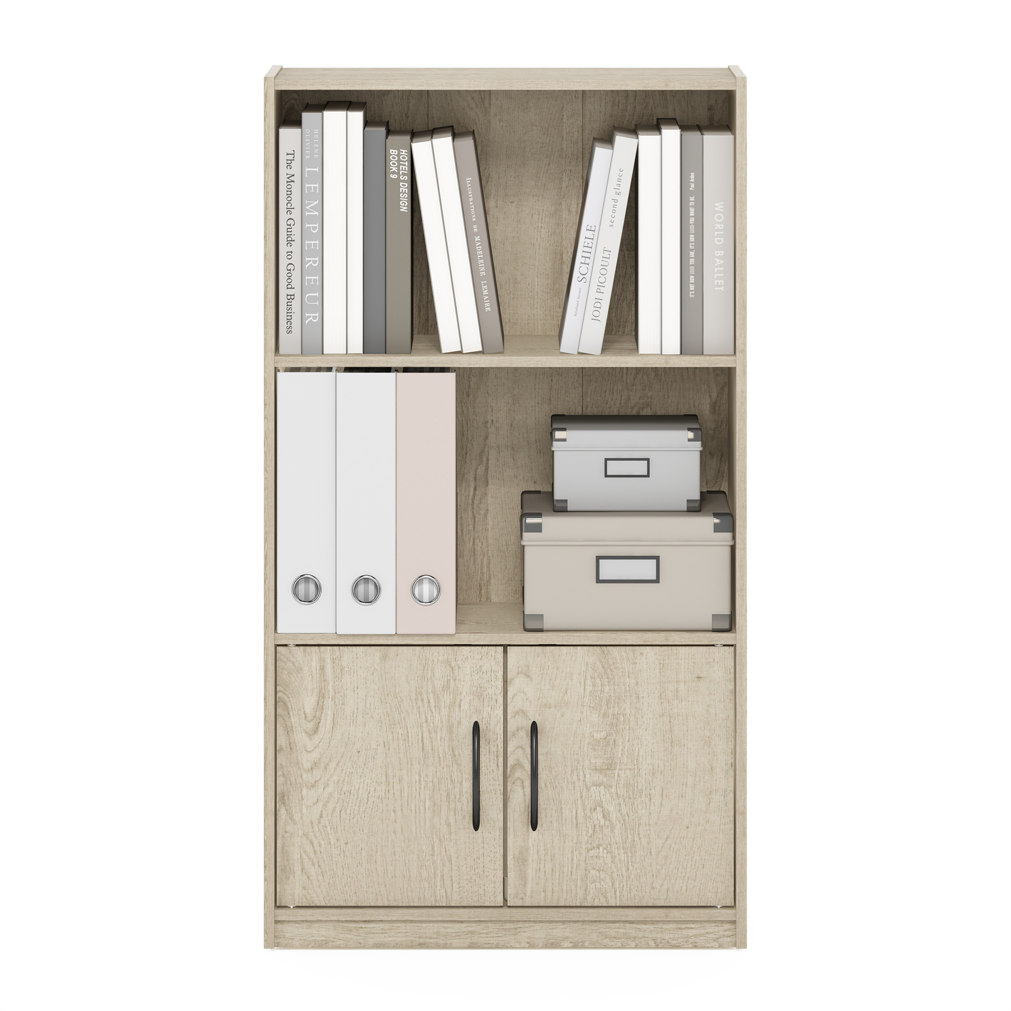 Furinno Gruen 3-Tier Open Shelf Bookcase with 2 Doors Storage Cabinet