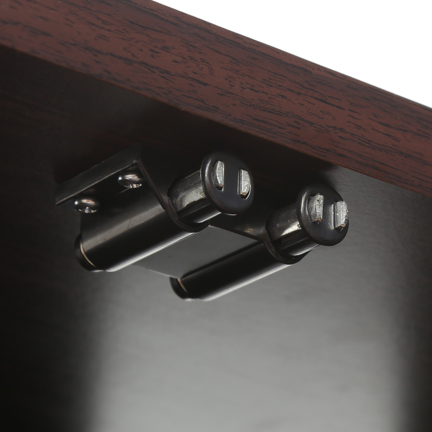 - Glass door designed for better storage and display of media equipment.
