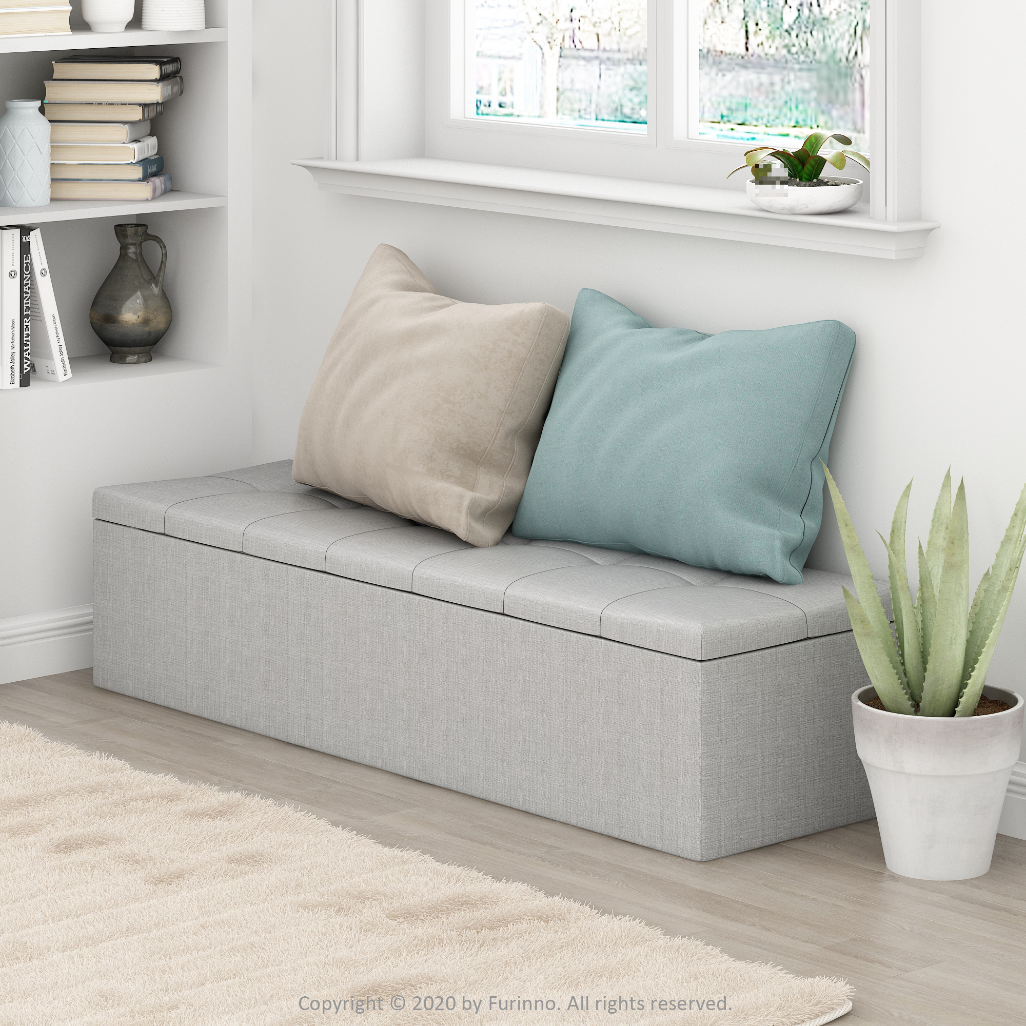 Furinno Laval Single Row Tufted Storage Ottoman Bench