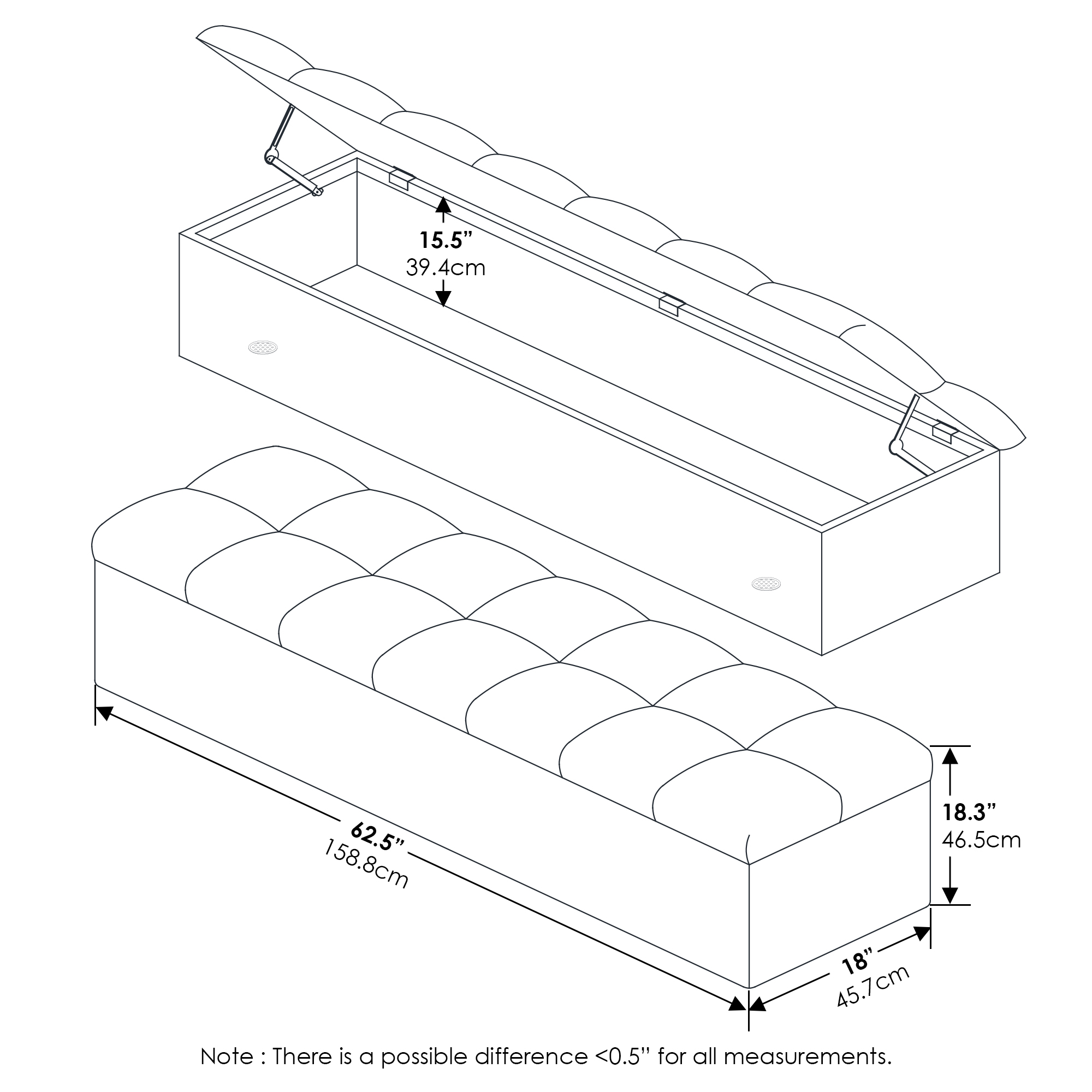 Laval series benches are a versatile piece to the home. It can be used as a bed bench or a storage bench. This button tufted bench adds a hint of style to your home, is the perfect pick to match any button tufted headboard bed. A slim and sleek cushion made of 100% polyester with a 250 lbs weight capacity. This bench provides extra storage space and helps with keeping bedroom out of mess. Assembly is easy with the provided parts and hardware along with a step by step illustrated assembly instruction. Wipe clean with clean damped cloth and avoid any harsh chemicals to avoid damaging the finish of the product. Pictures are for illustration purpose. All decor items are not included in this offer.
