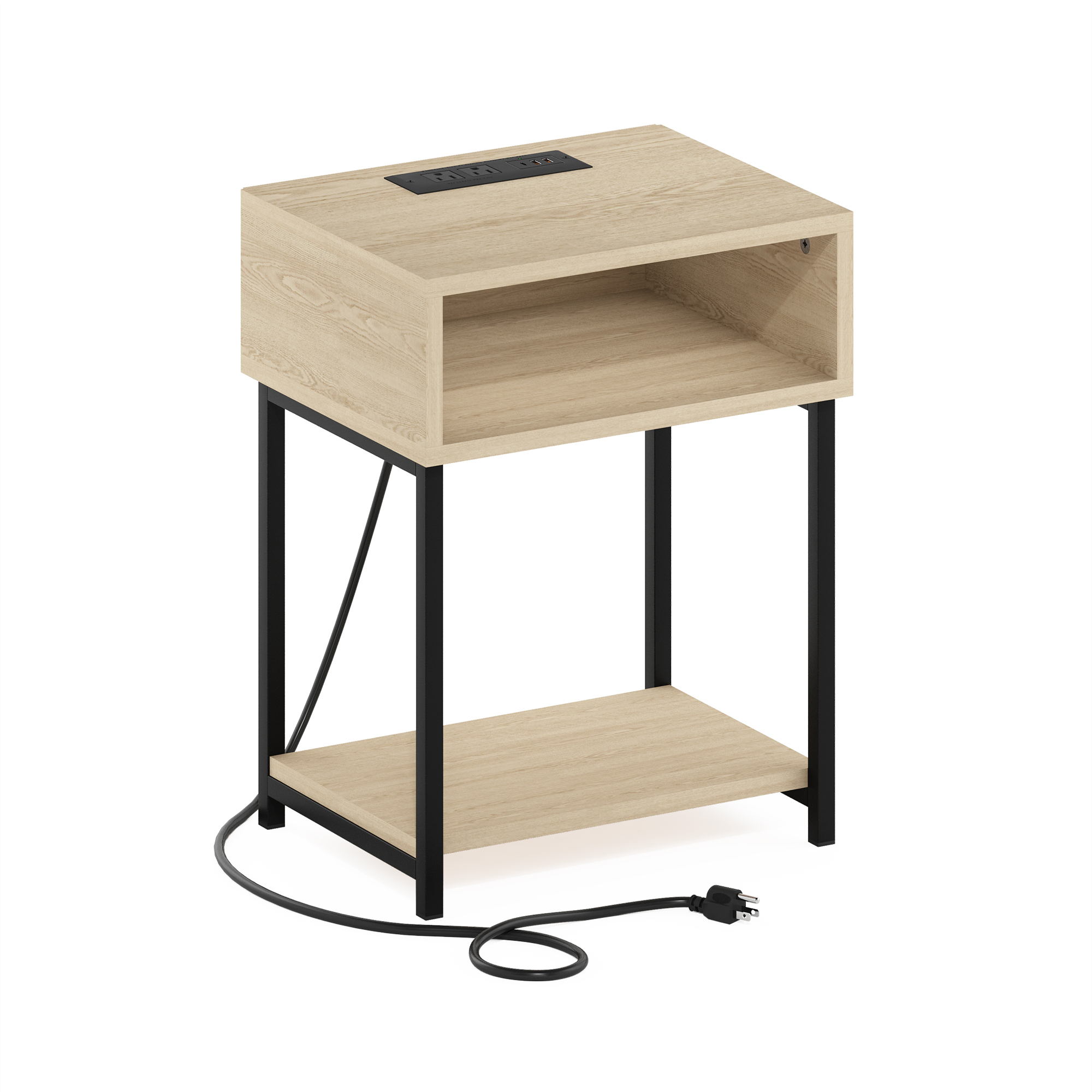 Furinno Moretti USB and Type-C Charging Port Open Storage Side Table with Metal Frame